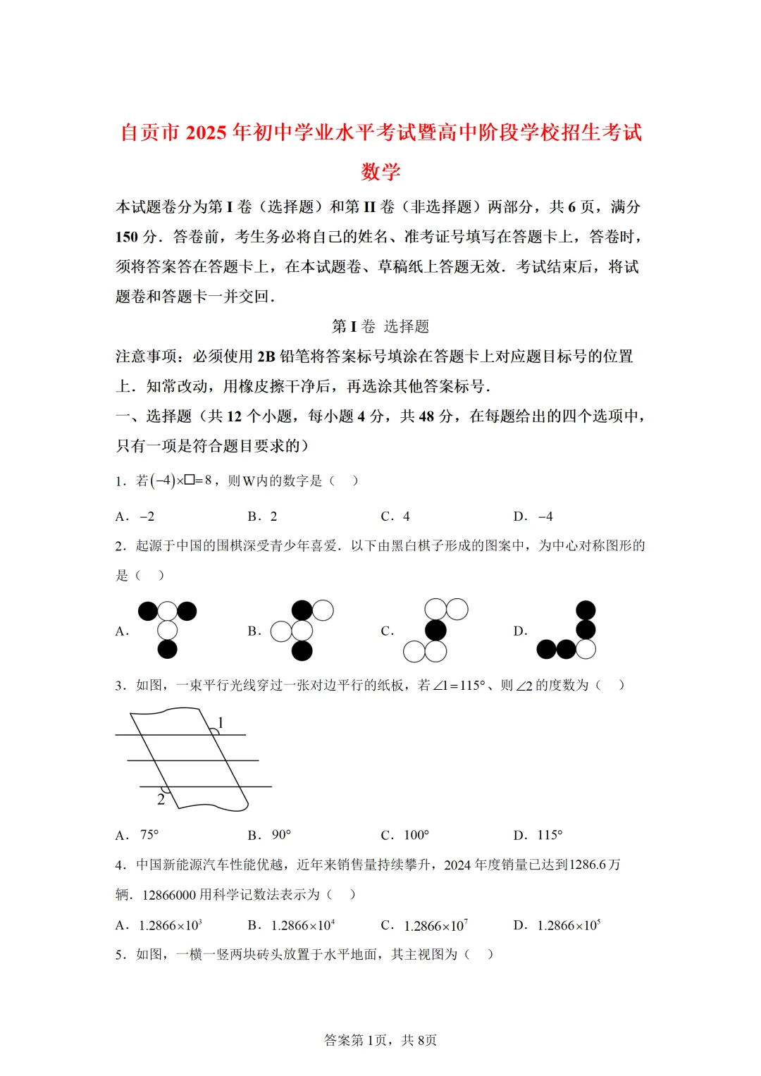 可下载:2025年中考数学【四川省自贡市卷】(含解析) 原卷版(答案在后面) 关注公众号,回复:电子版 自动领 关注公众号,回复:电子版 自动领 解析版 关注公众号,回复:电子版 自动领 关注公众号,回复:电子版 自动领 关注公众号,回复:电子版 自动领 (试卷著作权归属于相关教育部门) 关注公众号,回复:电子版 自动领