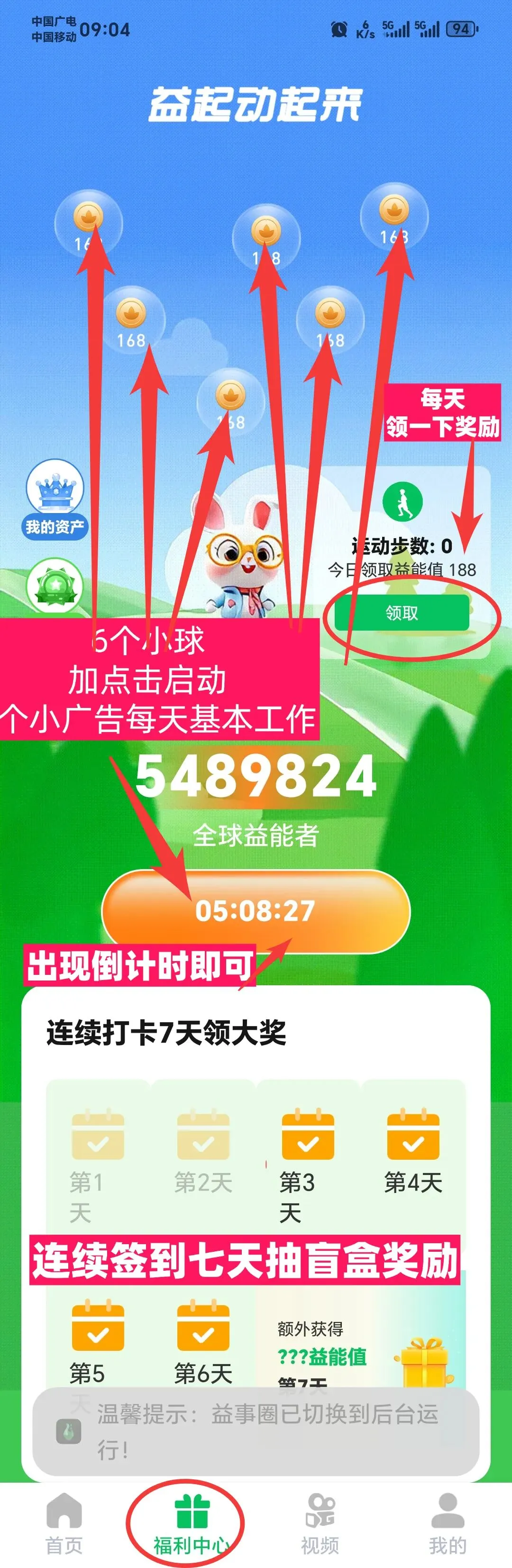看6个小球加点击启动七个小广告操作具本相同,以上看广告技巧方法适合所有平台。