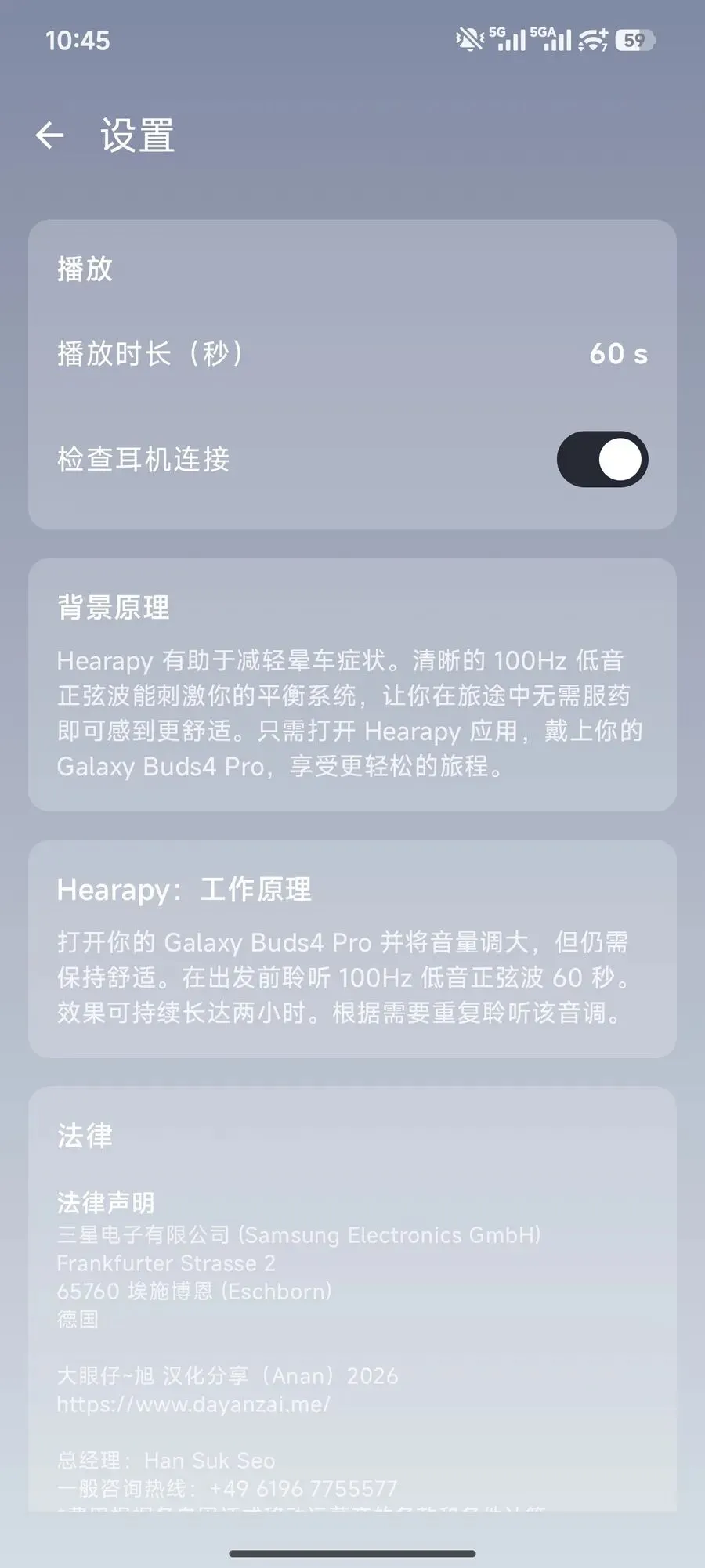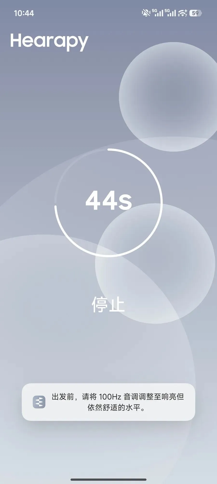 2.打开Hearapy,点击播放,默认60秒,也能根据自己的情况,在40-120秒之间调整,安安静静听完就好。