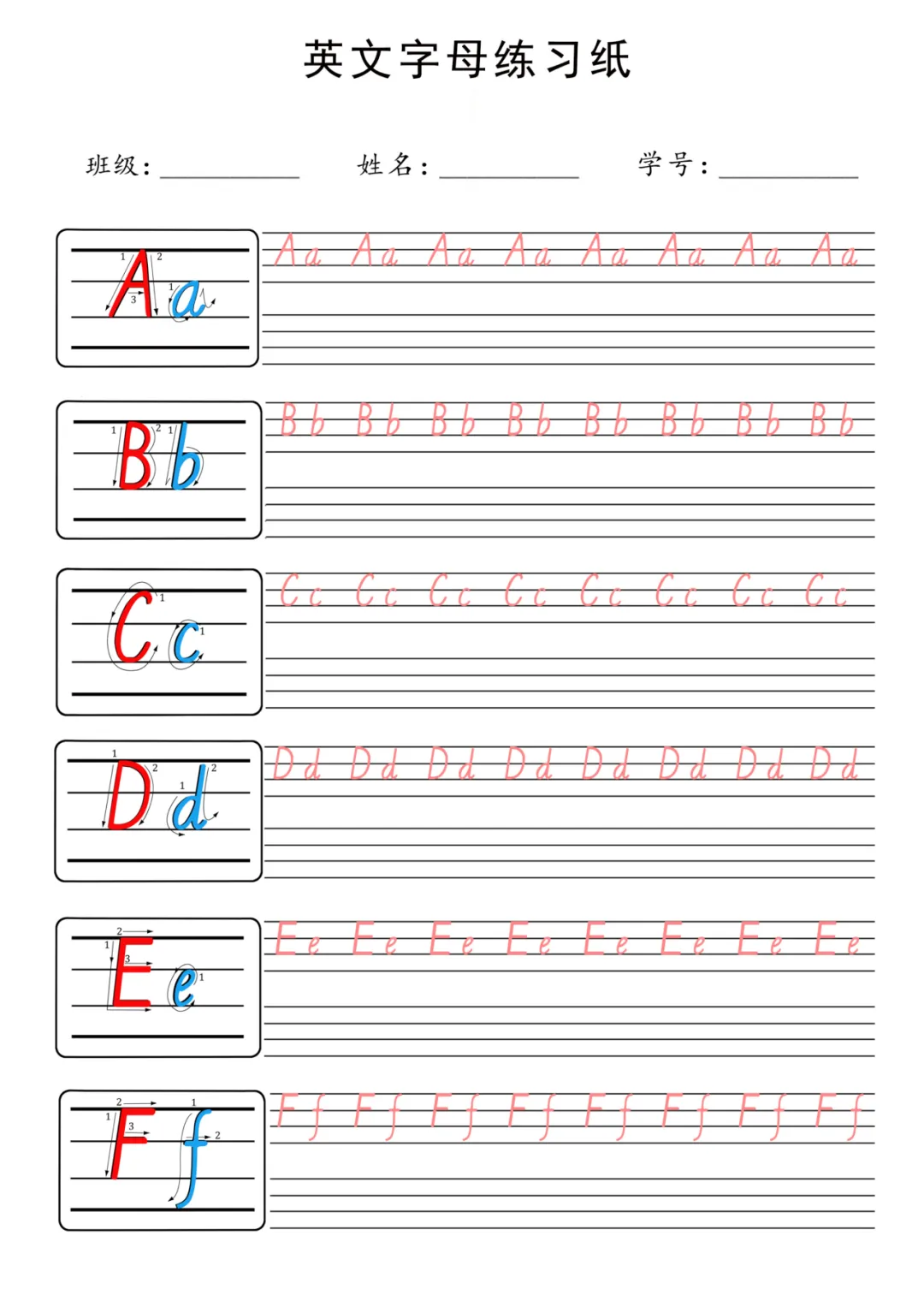【控笔】字母描红+笔顺彩色款-可打印