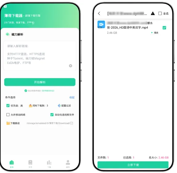 将那些让你心动的磁力、HTTPS、Edk 电驴、FTP 等链接,直接“喂”给首页的解析框,轻轻一点「开始解析」。它会乖巧地为你抓取内容,选中心仪的文件,按下「立即下载」,一切就绪,等待你的“检阅”。