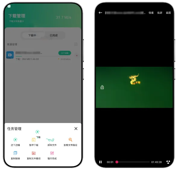 内置的视频播放器,还支持“倍速”播放,以及“投屏”到更大的屏幕,下载与观影“一步到位”,极致的体验感,让你沉醉其中,难以自拔。