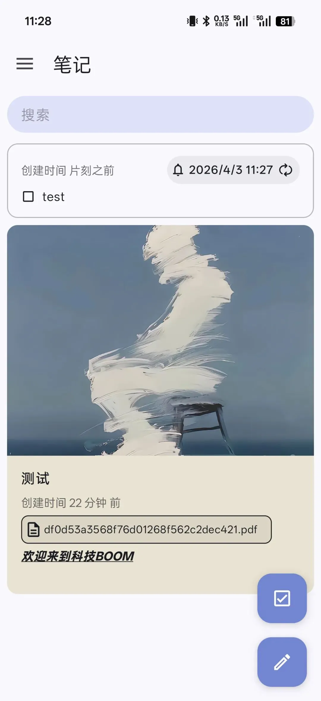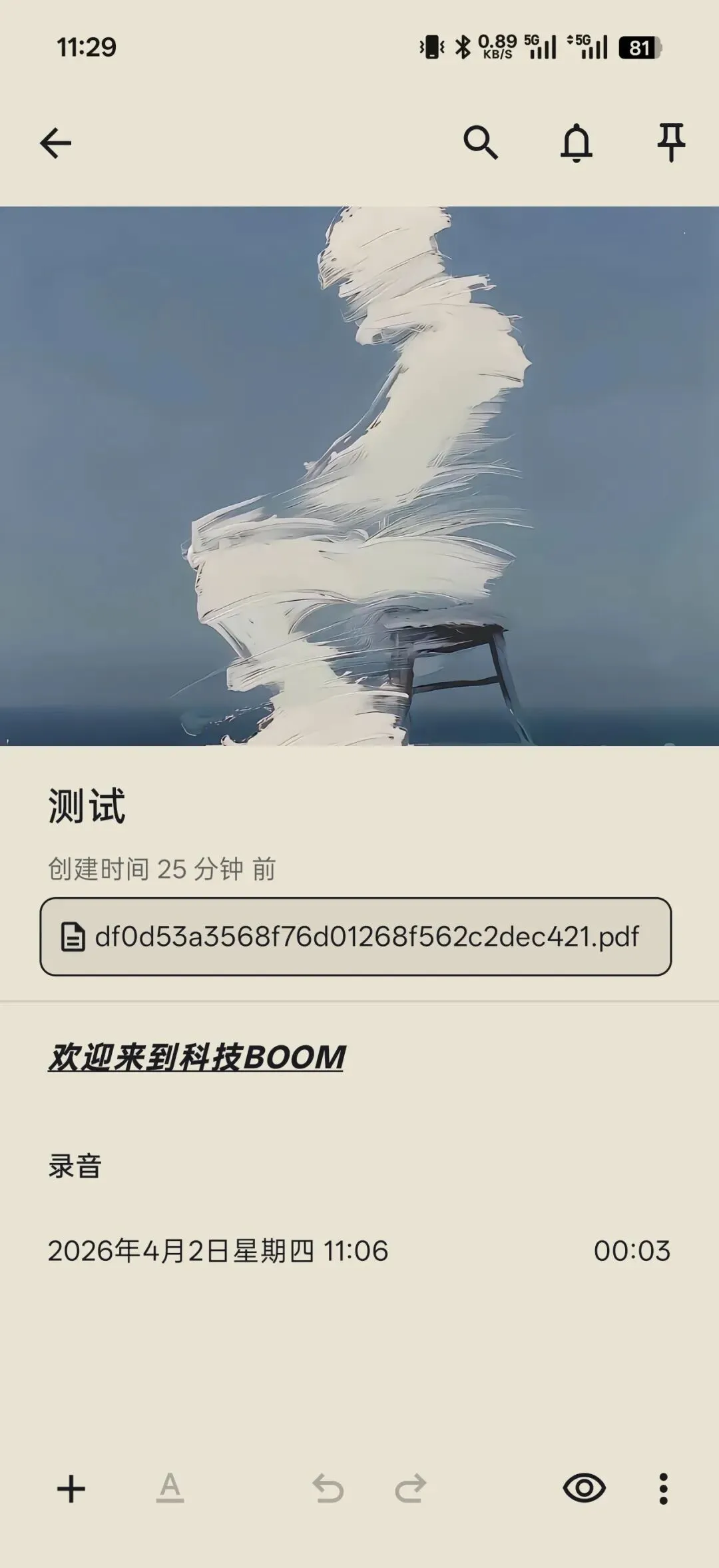 支持给笔记添加图片、文件、录音。