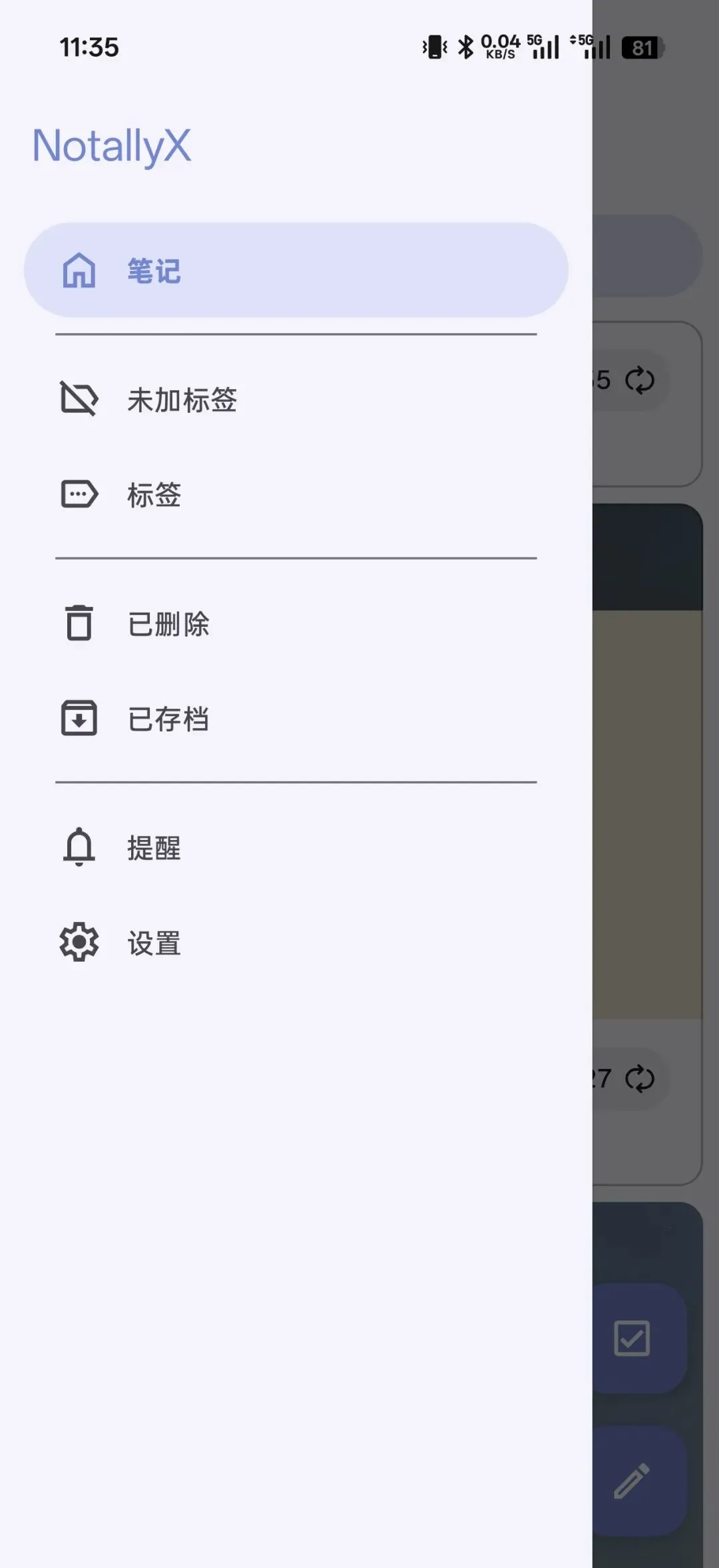 点击软件主页左上角的三条横线,可以按分类、标签查看笔记,可以进入设置。