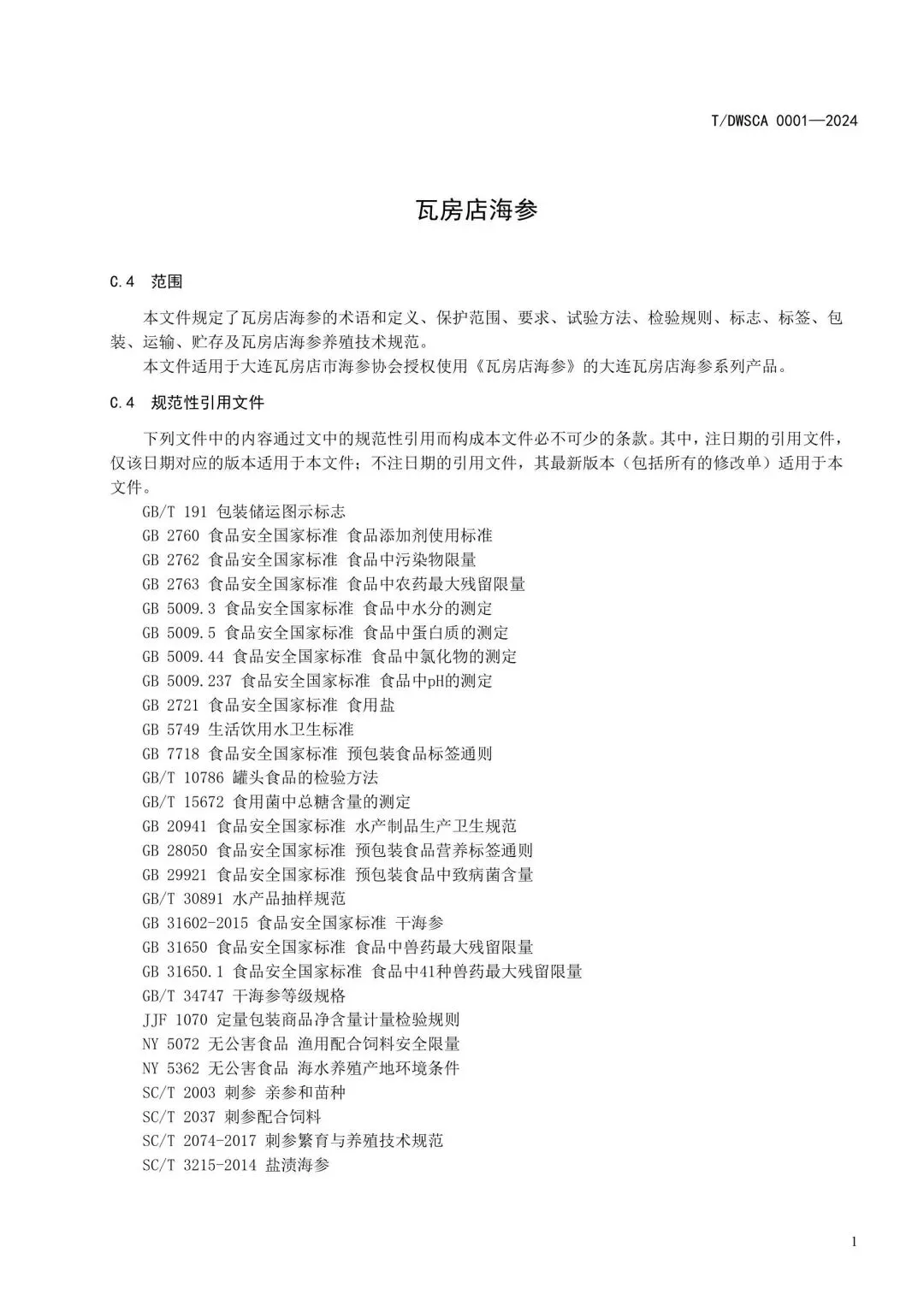 根据辽宁、大连、瓦房店三级市监局关于“绿标转化红标”相关要求,大连瓦房店市海参协会在全网首发《瓦房店海参团体标准》,供用标企业参考使用。