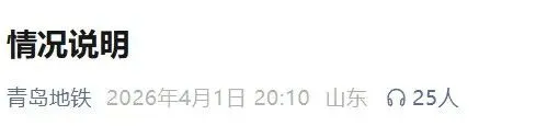 青岛地铁发布情况说明!