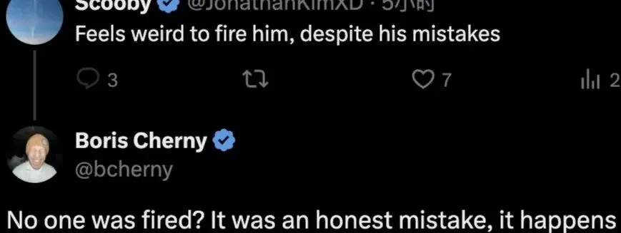 从回复来看,没有任何人被解雇,并且CC之父说出了:人非圣贤,孰能无过,偶尔发生。