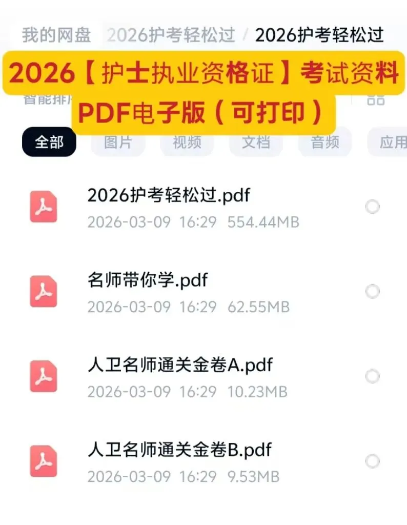 2026【护士执业资格证】考试资料PDF电子版(可打印)