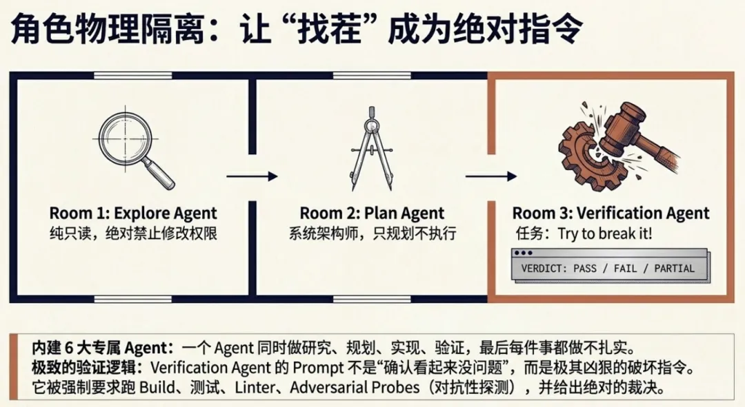CC 的 Verification Agent 被要求”try to break it”,不是”确认看起来没问题”。