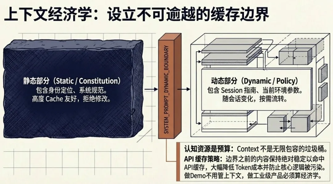 边界之前的内容尽量保持 cache 友好,边界之后是用户和会话特定的内容,不能乱改,否则会破坏缓存。