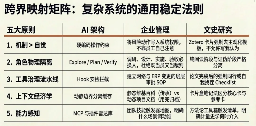 拆完这 4756 个文件后,我提炼出 5 条设计原则。意外的是,这些原则不仅适用于 AI 系统,对企业流程优化和文史研究方法,同样有启发。
