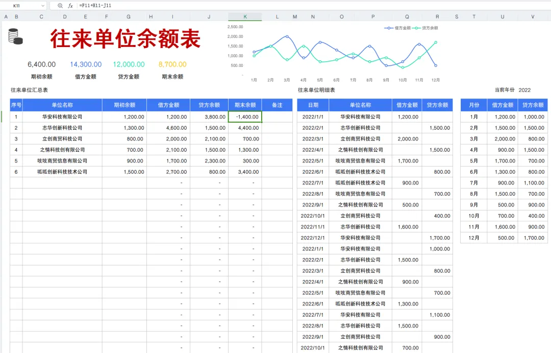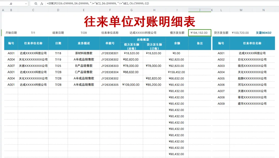 全自动往来账明细表,不要太好用哦!内置Excel函数公式,输入数据直接生成结果,查询还方便!