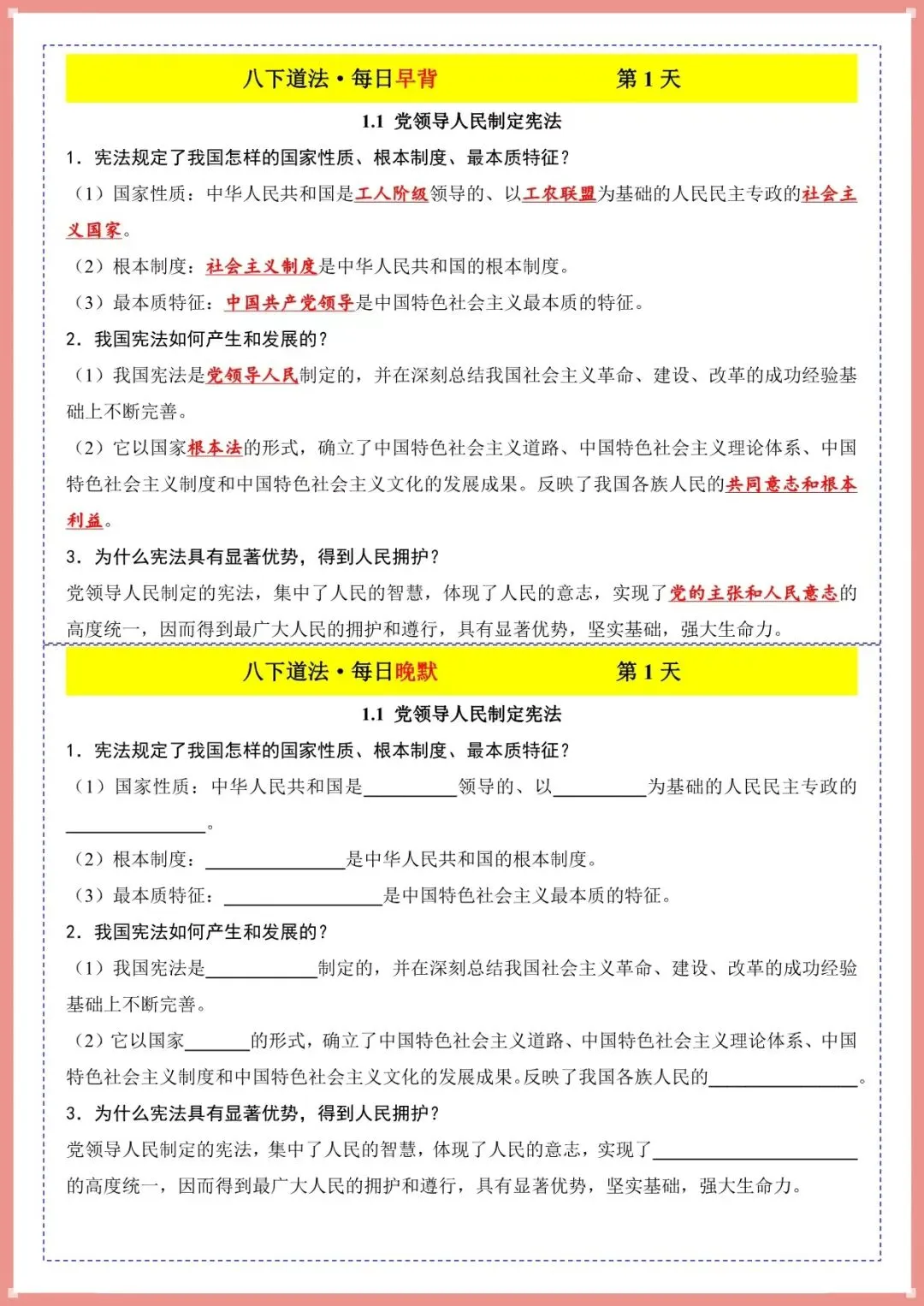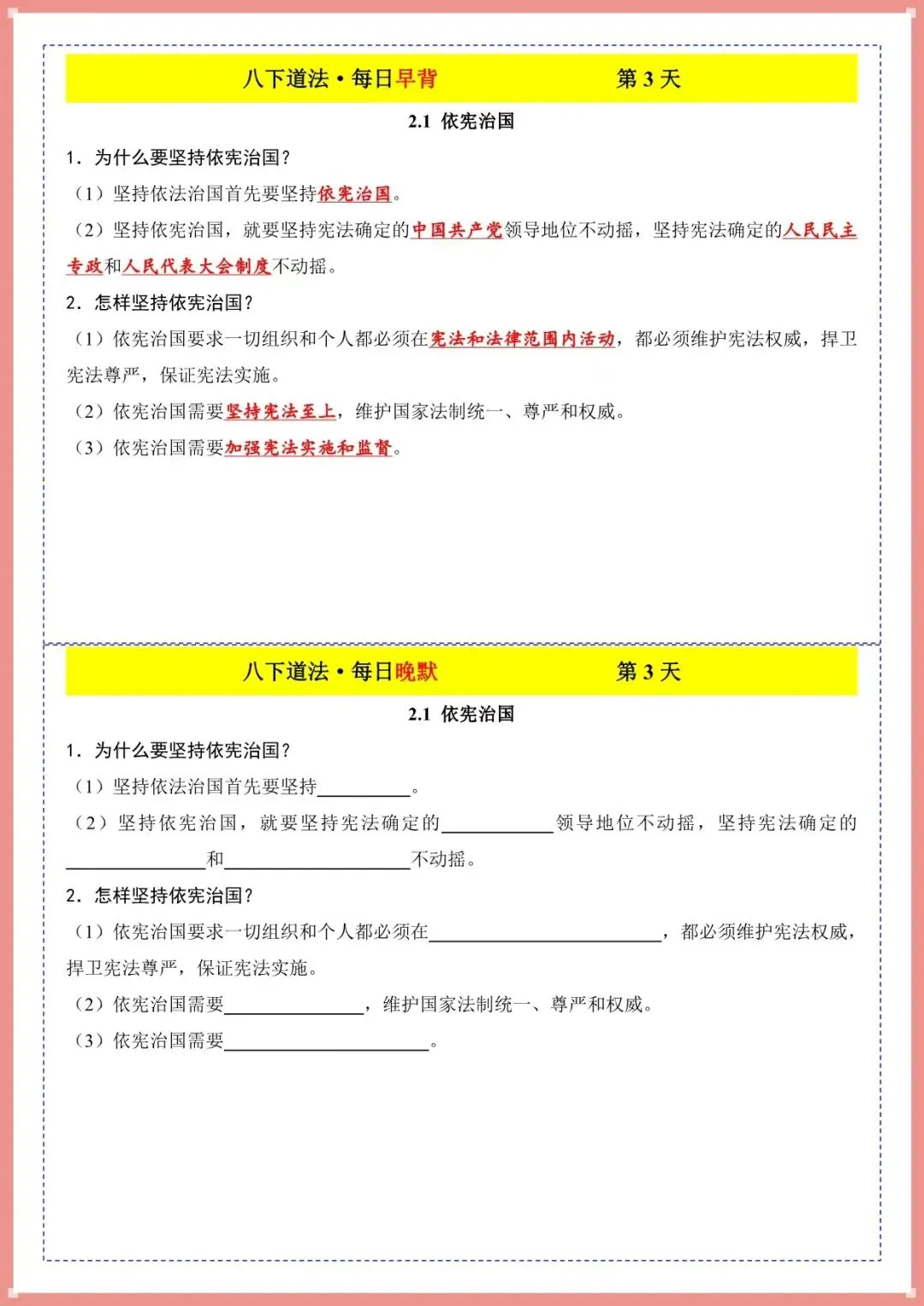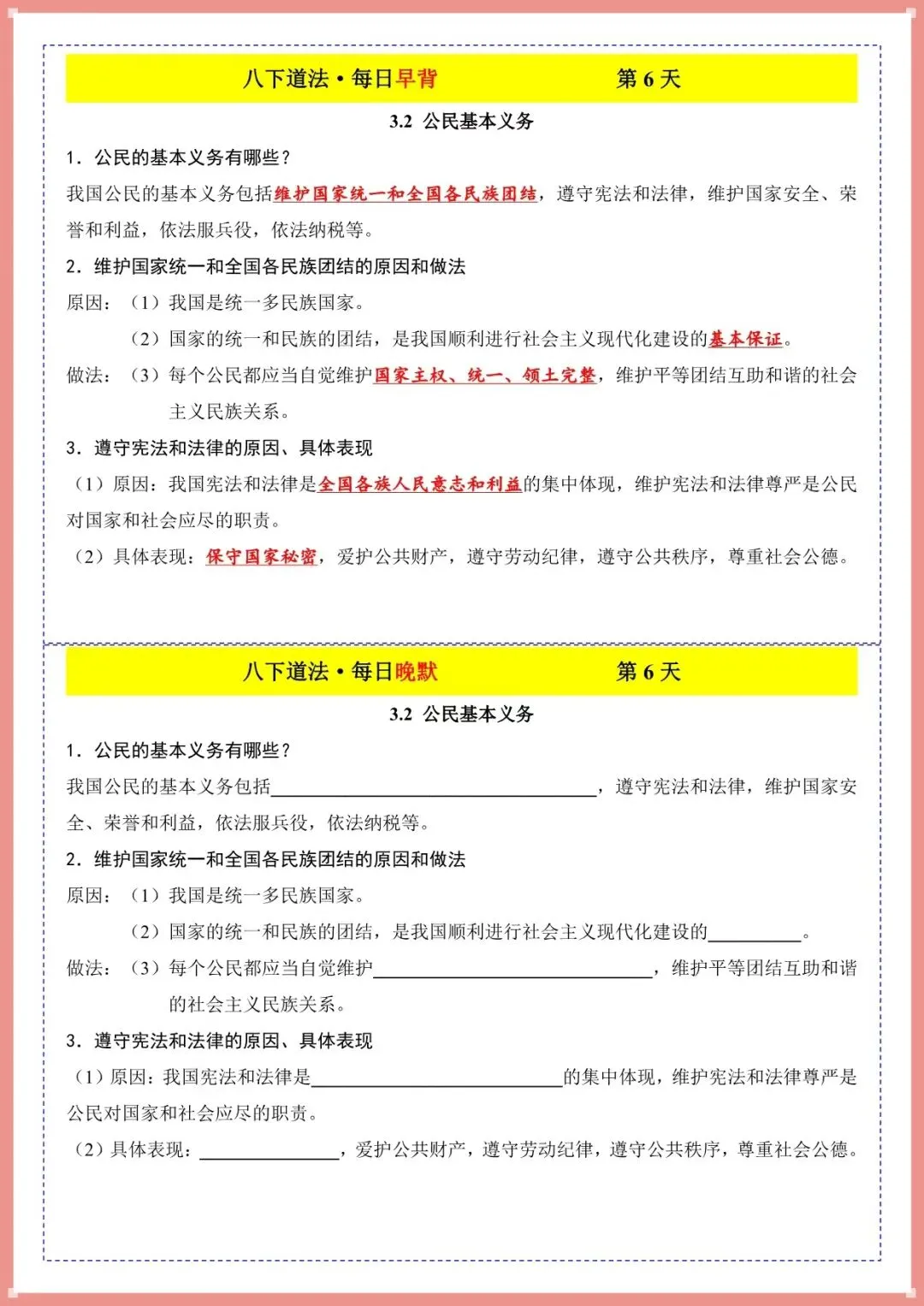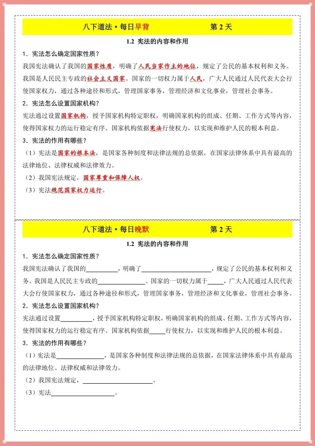 2026春新八下道法・每日早背晚默