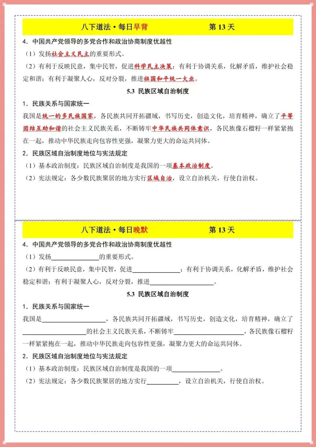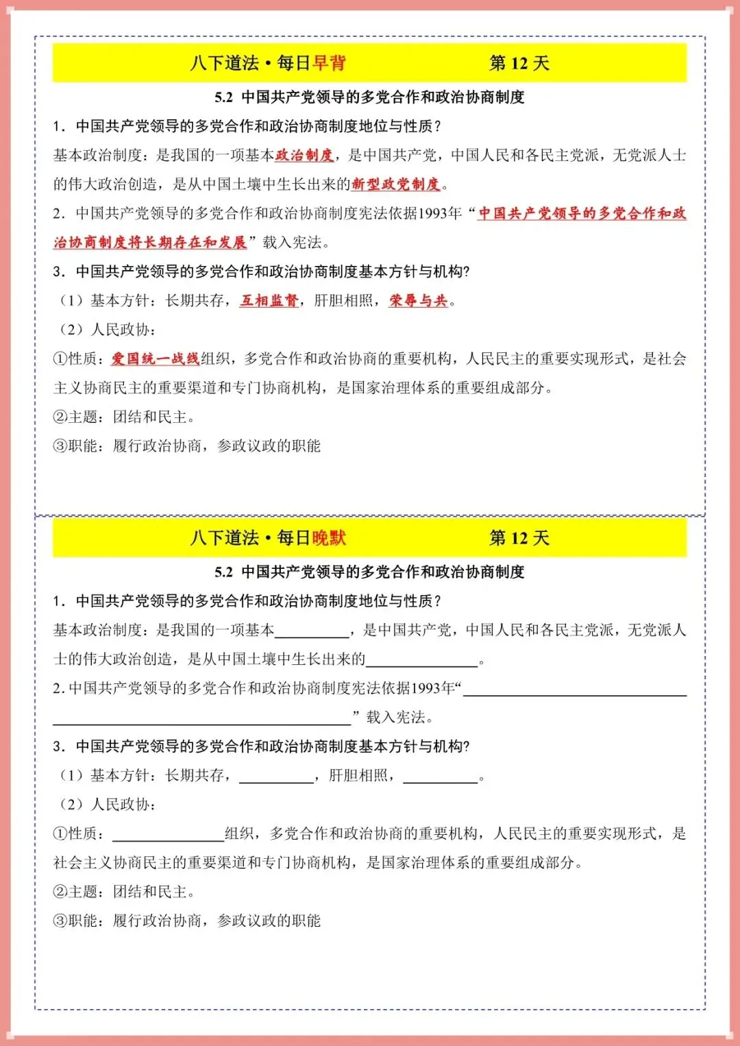 2026春新八下道法・每日早背晚默(电子版可打印)