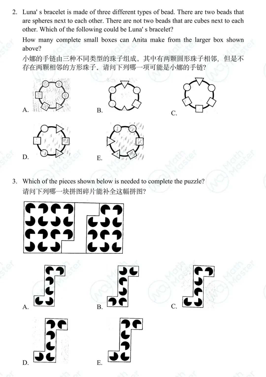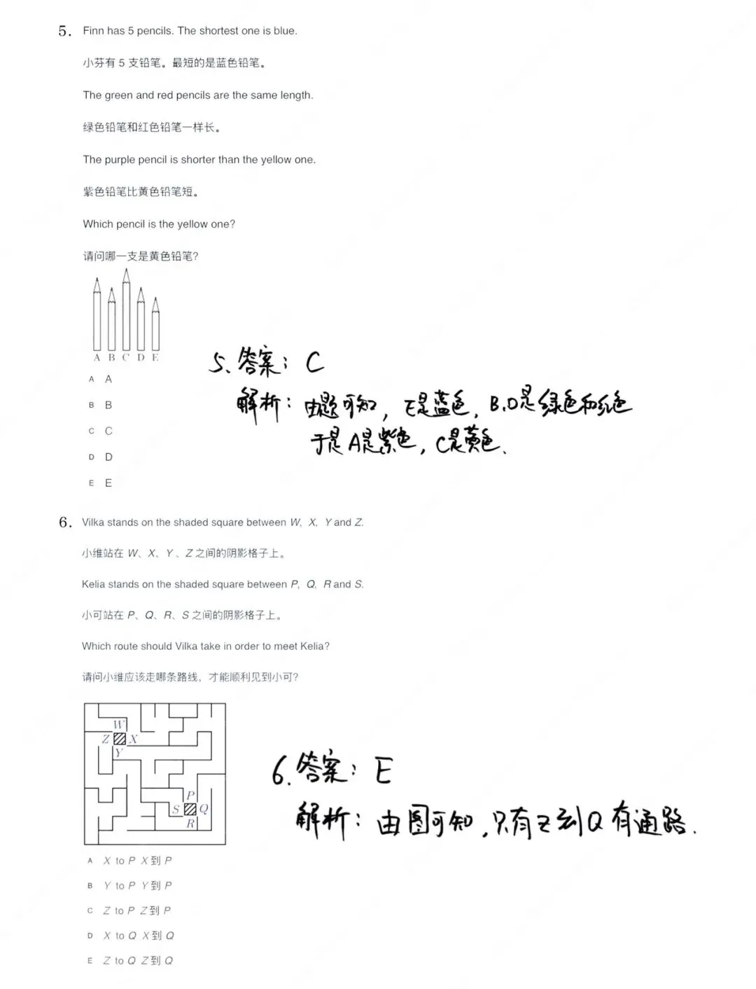 · 等级A:小学1年级&2年级(双语读题有拼音)