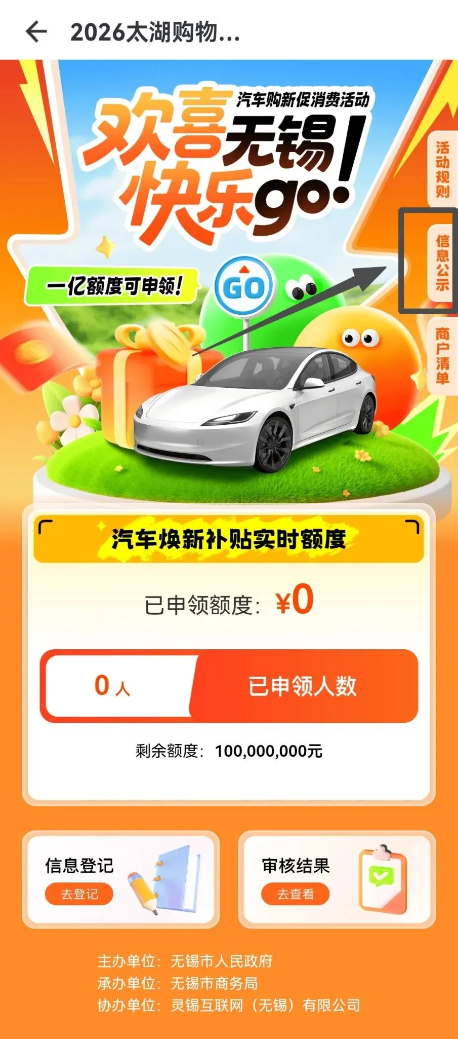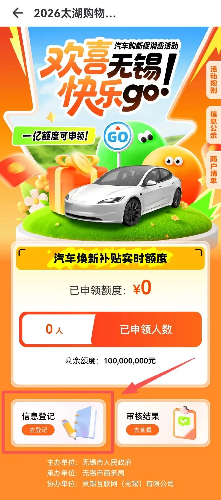 完成购车的个人消费者使用本人实名认证的灵锡App账号登录灵锡App-首页【生活页】-顶部宣传图2026“欢喜无锡 快乐go” 汽车购新补贴活动页面进行在线申报,所提供信息默认授权用于本次活动。需提供的申请资料包括:
