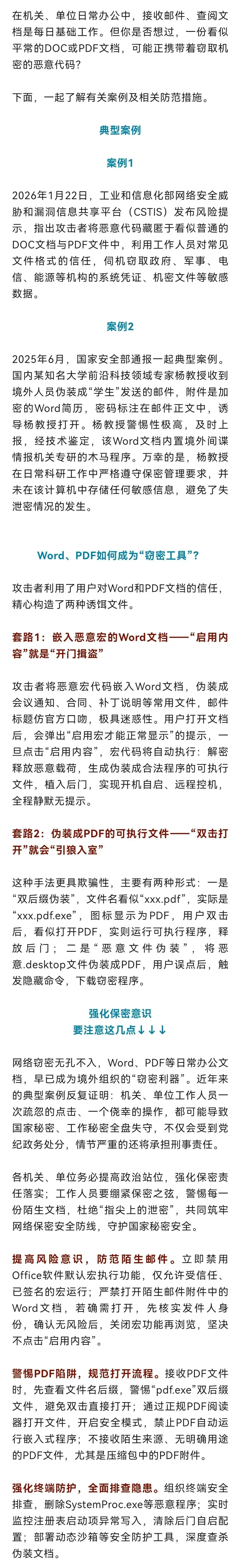 【平安奈古山】警惕!Word、PDF 也能窃密!保密防线需绷紧!