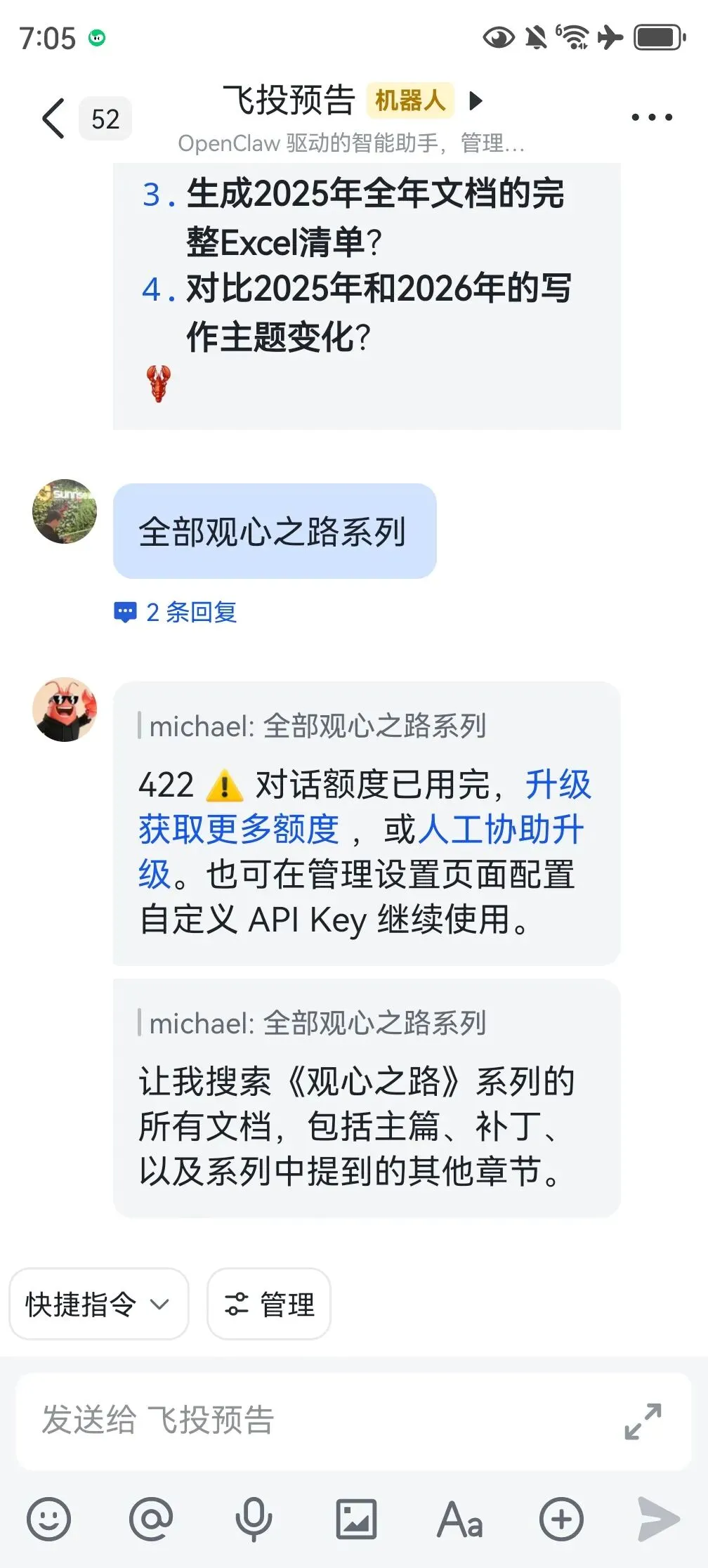 当然在使用AI工具的时候会遇到各种各样的问题,这不昨天,我家的AI助手突然闹脾气不说话了。