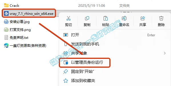9.返回之前解压的【VRay7.0 for Rhino7-9】文件夹,打开【Crack】,全选所有文件,鼠标右键选择【以管理员身份运行】