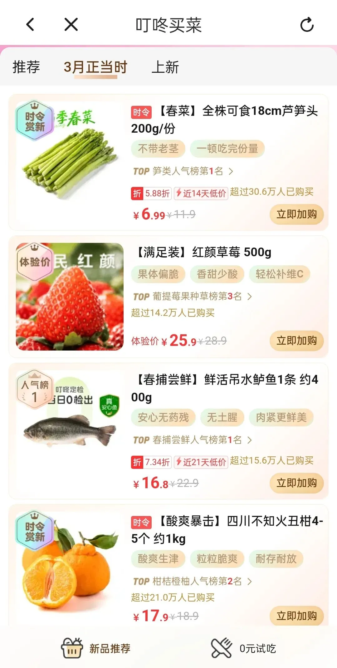 春雷响,万物长,正是吃春菜的好时节!叮咚买菜精选全国产地直采春鲜,层层把关锁鲜,把最新鲜的春日滋味送到你手中,价格还格外亲民。