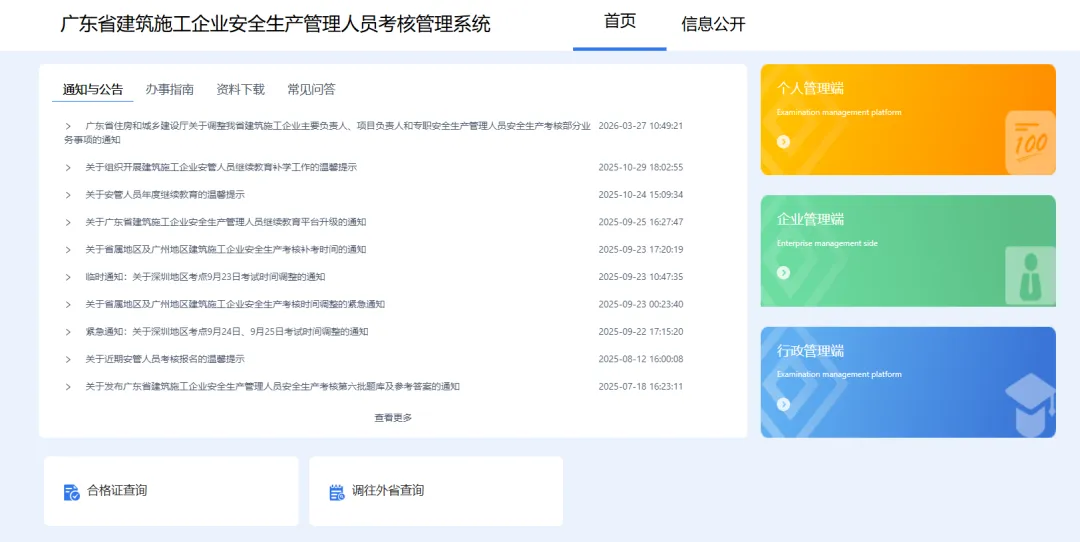 官方网址:广东省建筑施工企业安全生产管理人员考核管理系统