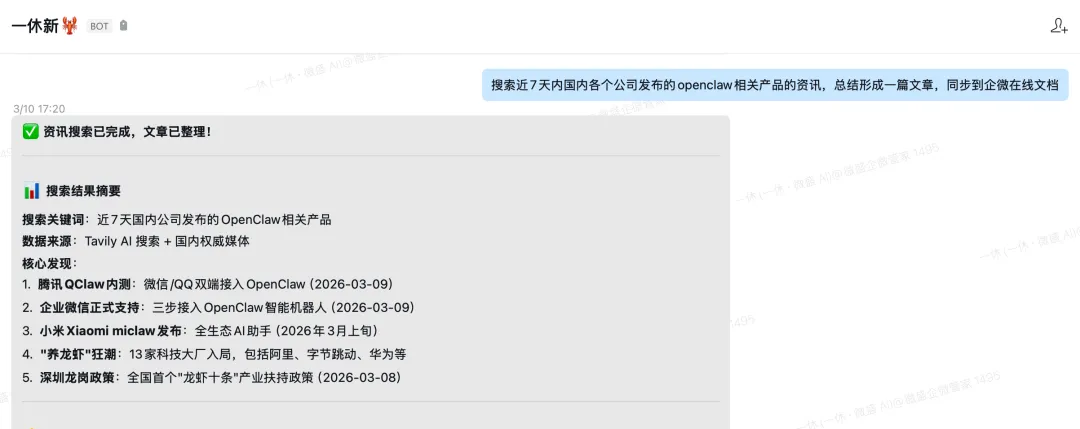企业微信深夜升级:说句话,龙虾帮你写文档、约日程会议、管客户(附实操指南)