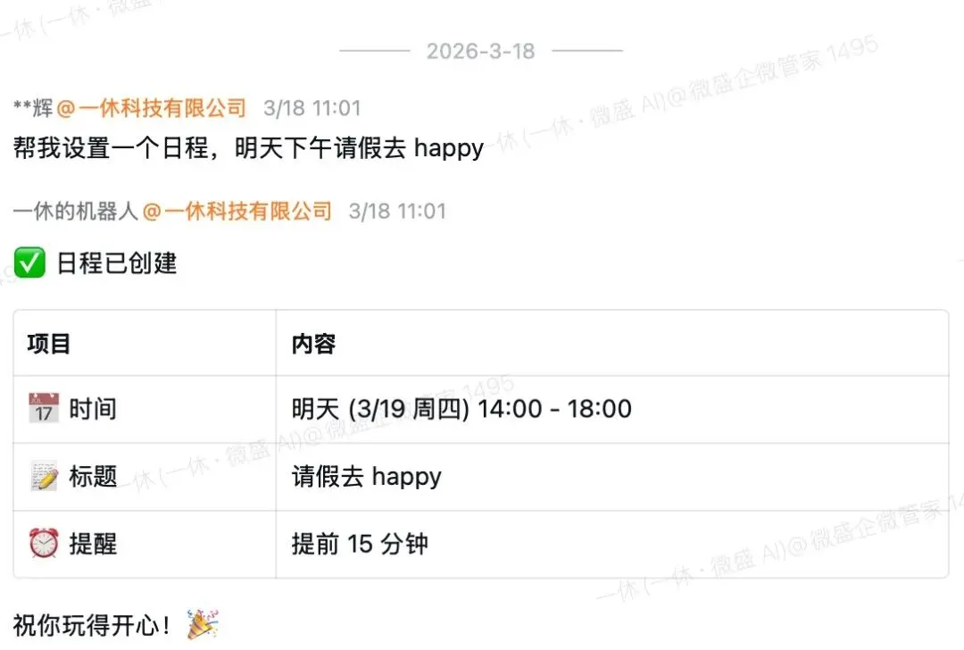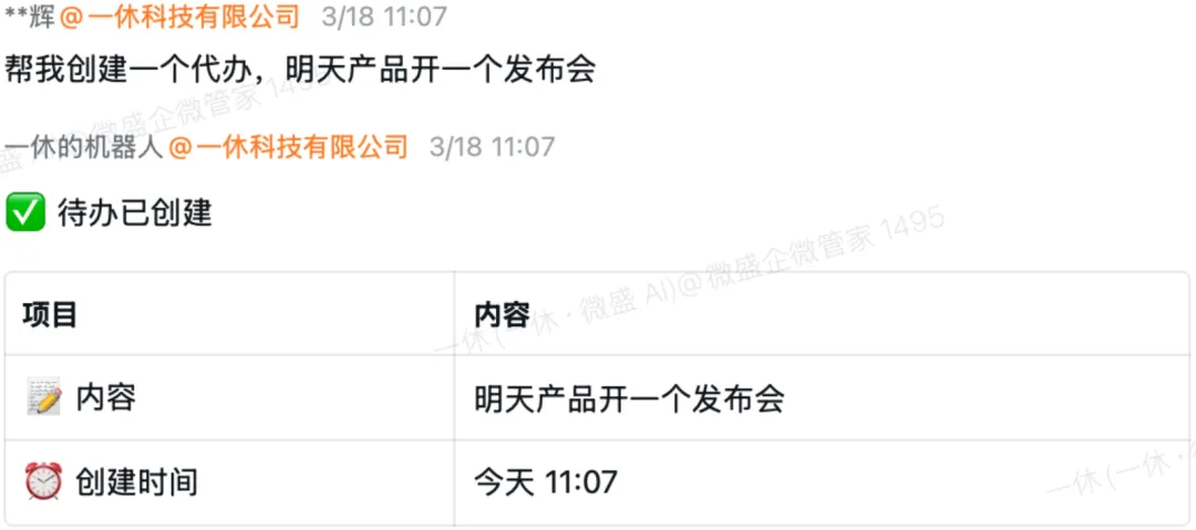 龙虾在你的企微待办列表里创建一条,到点自动提醒。
