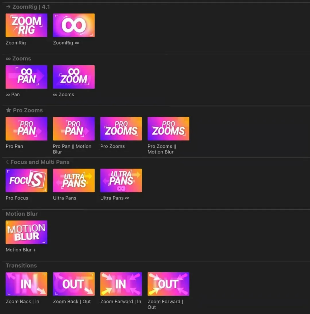 FCPX插件:FCBs Pro Zoom 4.1.1 一键式3D摄像机运动、专业变焦、缩放、景深、运动模糊过渡视觉效果插件