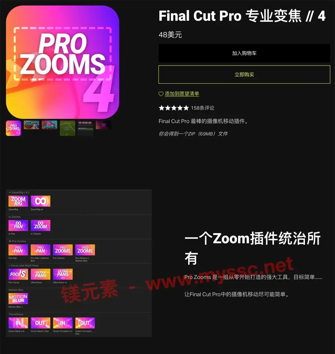 FCPX插件:FCBs Pro Zoom 4.1.1 一键式3D摄像机运动、专业变焦、缩放、景深、运动模糊过渡视觉效果