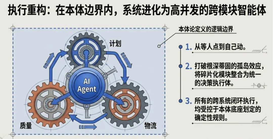 这是最核心的变化。AI 不再是等待指令的“被动工具”,而是具备跨系统闭环执行能力的“智能体(Agent)”。请注意,它不是在脱缰狂奔,而是在本体论定义的逻辑边界内,进行高并发的决策响应。