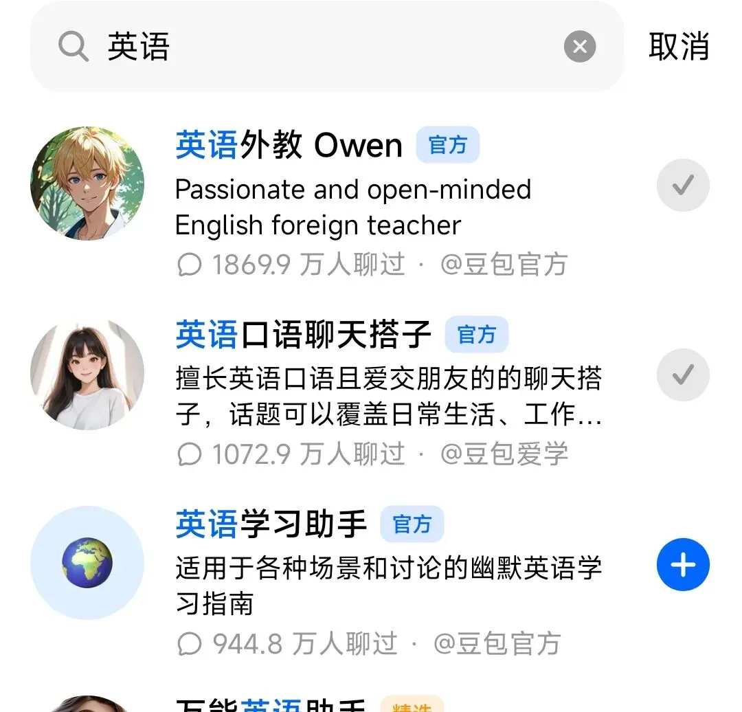 豆包学英语,可以随时随地学。只需要打开软件,开个头,顺着提示一点一点聊就可以了。