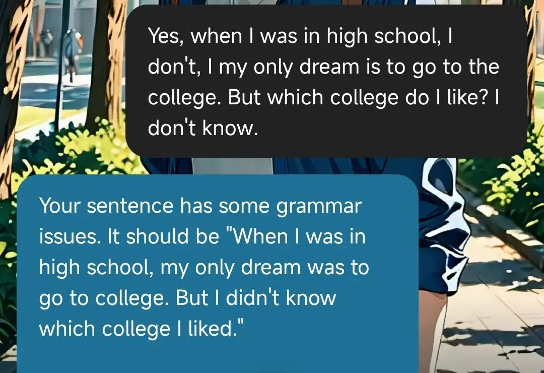 我只需要开一个头,他就能就着话题引导我表达。语法有问题时,直接支出语法错误。