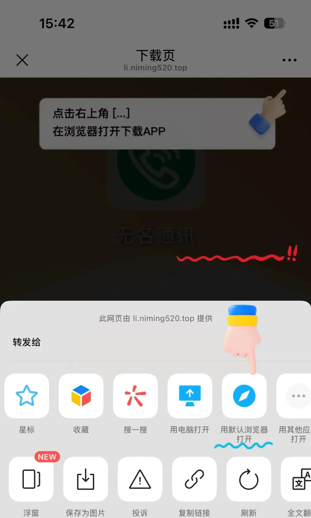 手机浏览器输入网址:传达.com(注意⚠️中间有个点)