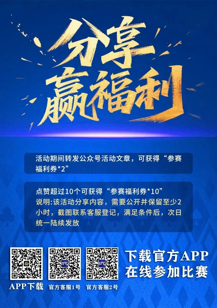 四月智竞不停歇,福利好礼享不停!IPG官方APP四月专属线上活动重磅开启,王牌晒图、连续打卡、转发赢券三大活动同步上线,海量资格赛电子票、参赛福利券免费送!