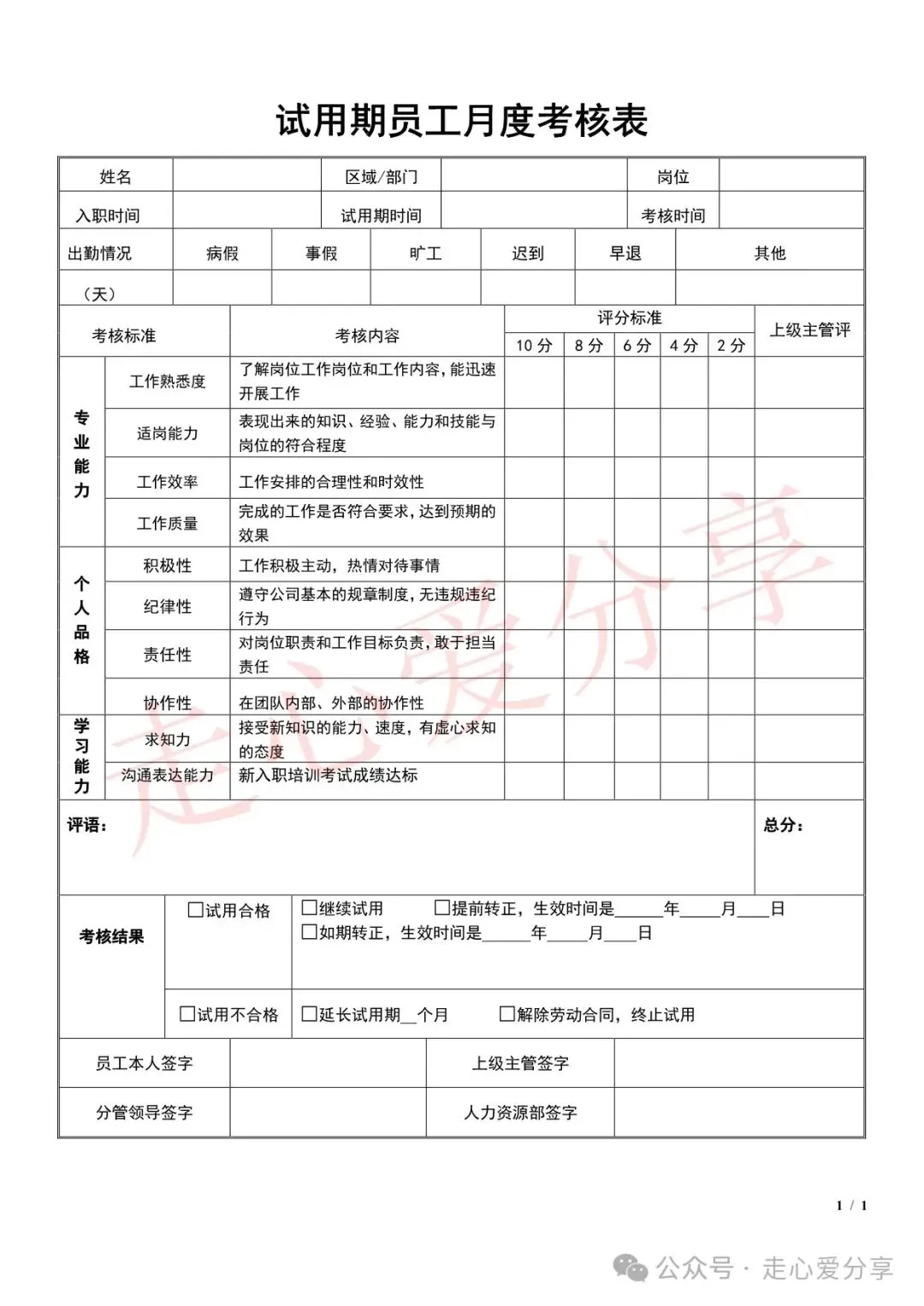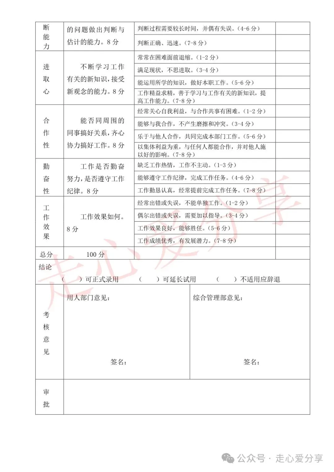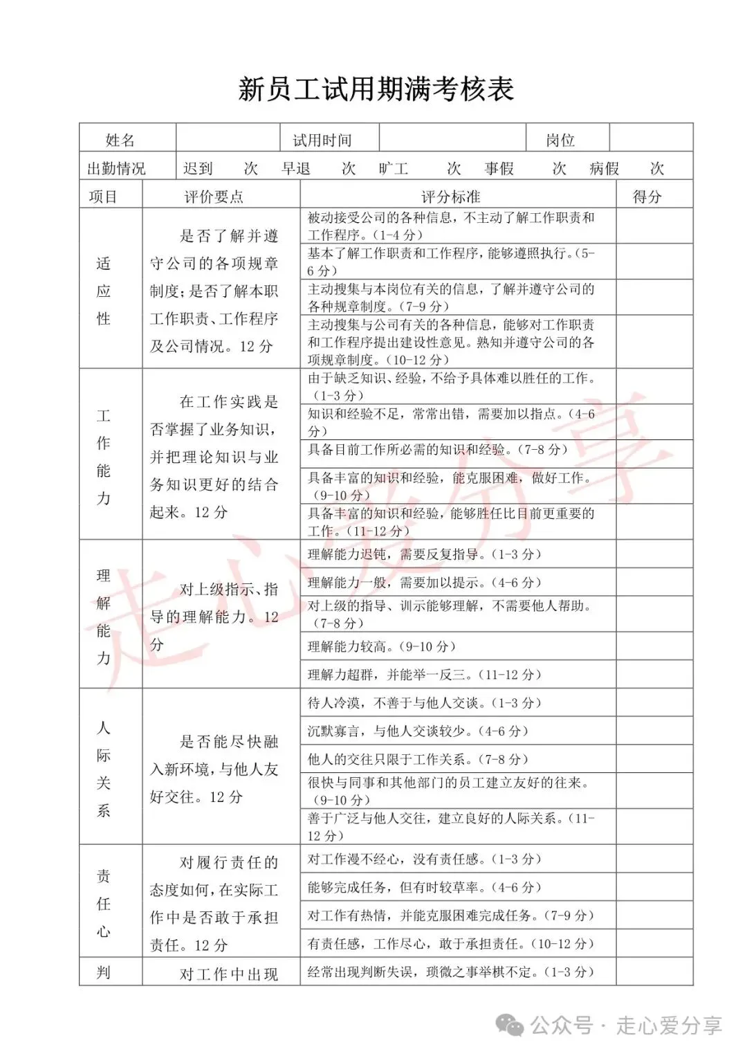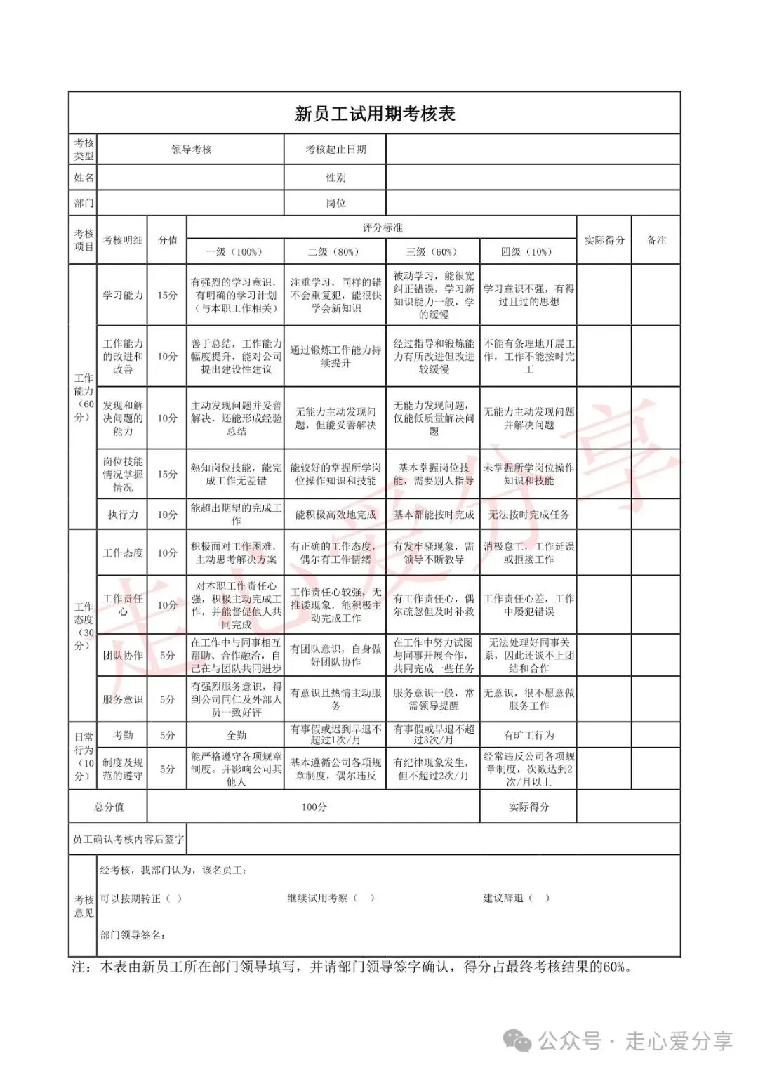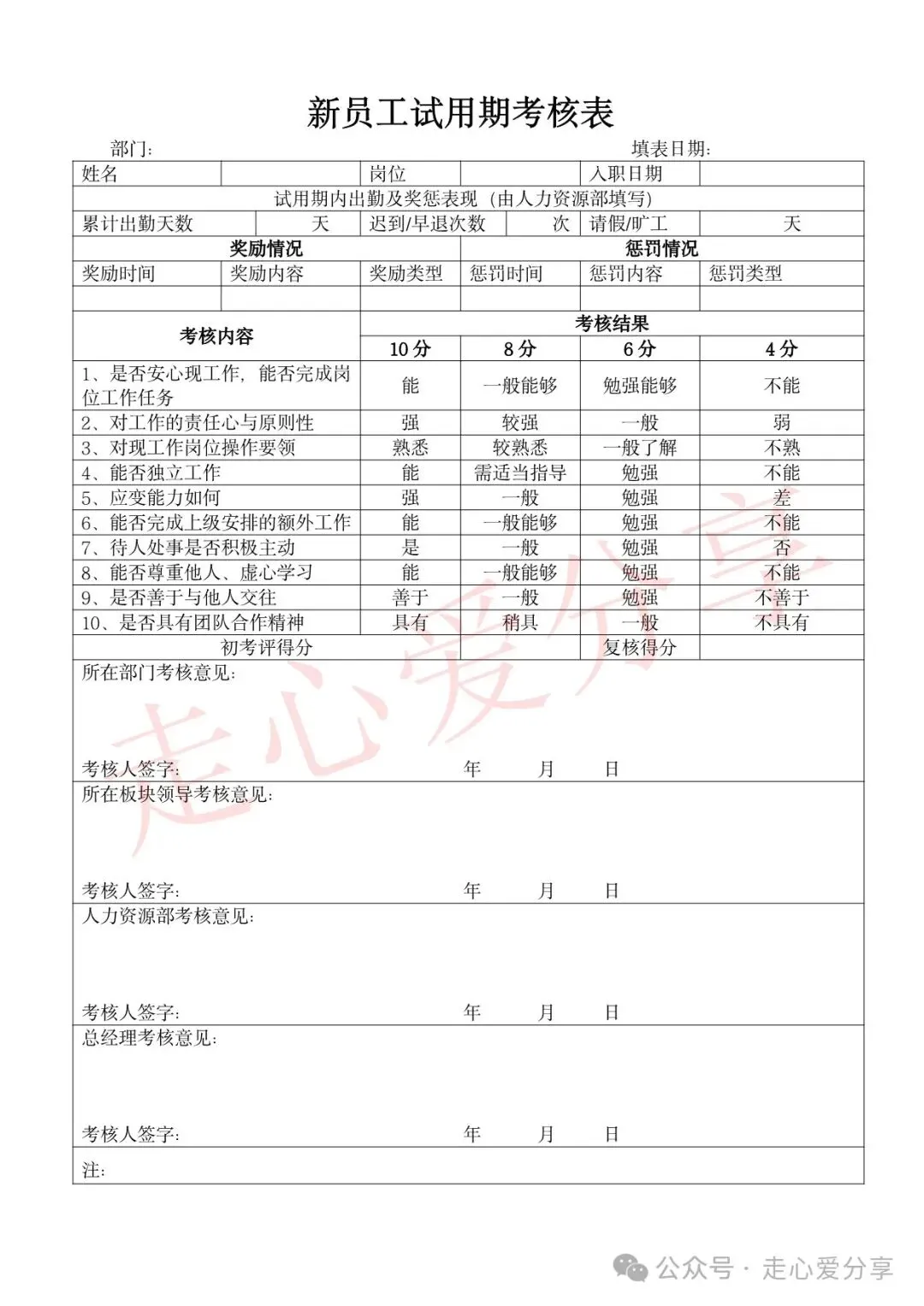 回复关键词“新员工试用期考核表”领取!