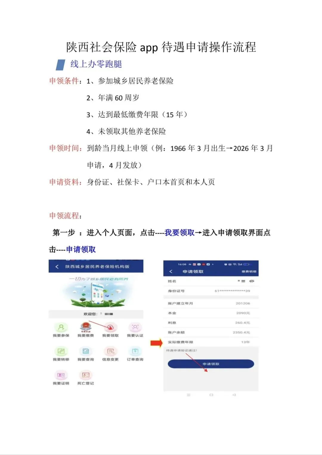 从本月起,当月到龄人员需本人在手机陕西社会保险APP上申请待遇,操作步骤如下,如有问题电话5529553咨询。