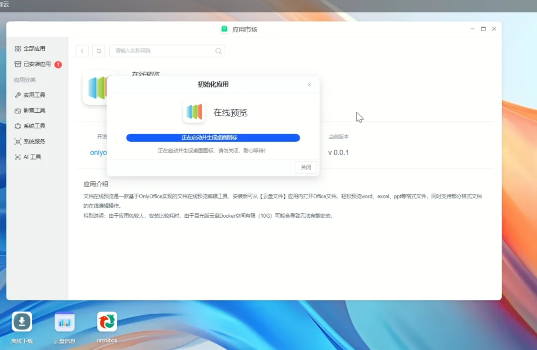 1. 打开拾光坞 PC 端客户端,进入【应用市场】,搜索【在线预览】