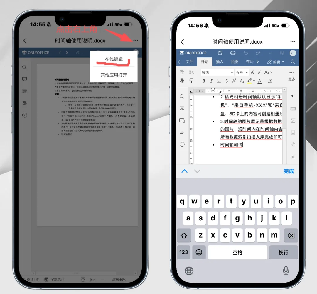 2.编辑模式,需点击右上角【···】,选择【在线编辑】,文档便切换到可编辑模式。编辑完成后,返回即可自动保存。 -