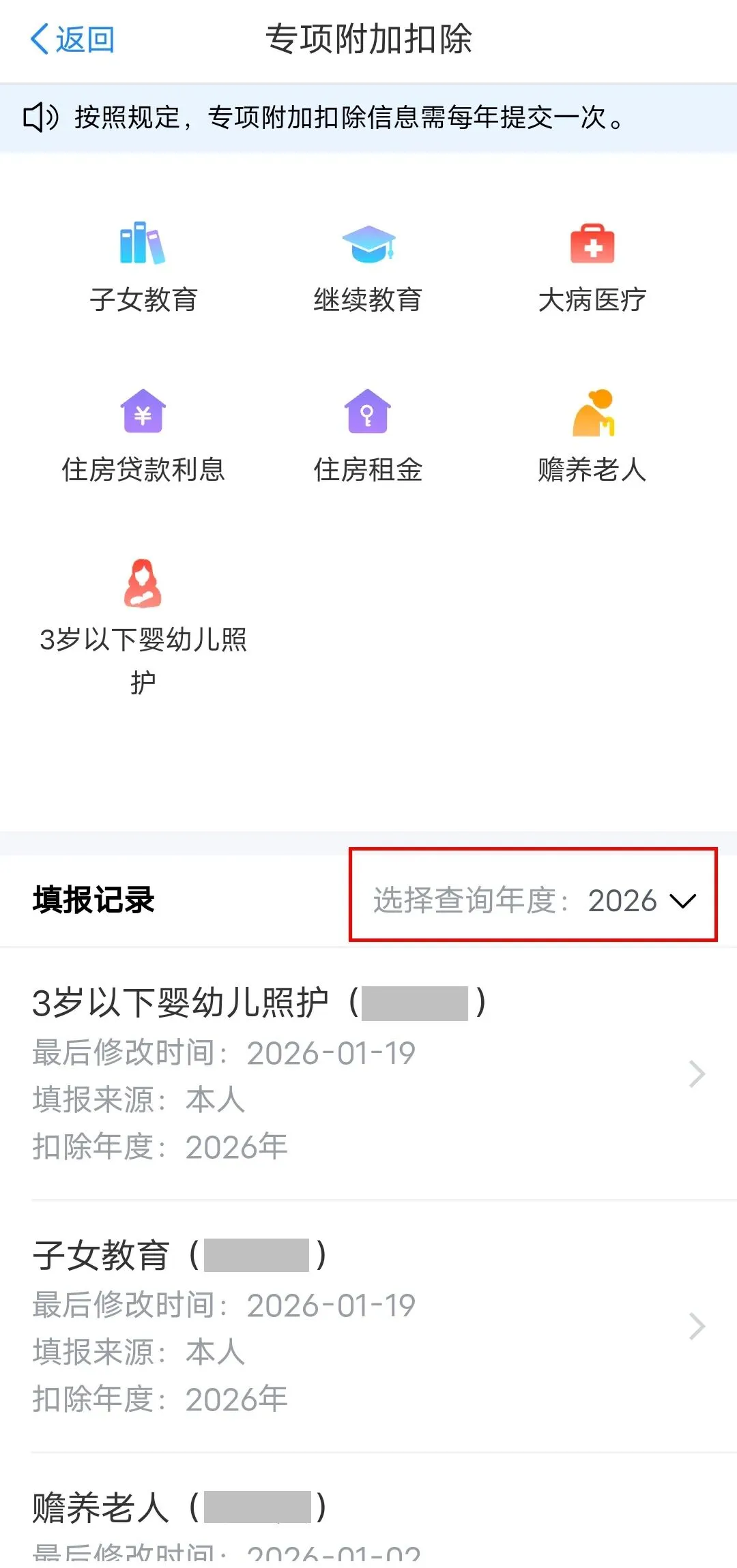 1.登录个人所得税App后,依次点击【办&查】-【办税】-【专项附加扣除】,在【选择查询年度】选择“2025”后点击【确定】。