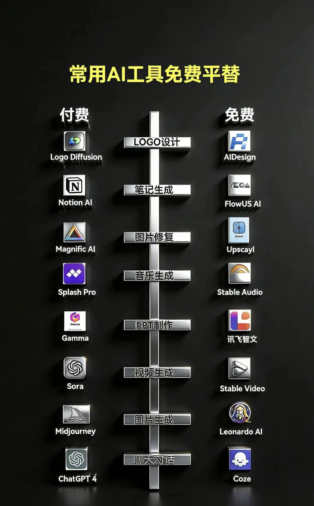作为天天和 AI 工具打交道的博主,最懂大家想用好 AI 又不想花钱的痛点!今天直接给大家整理了这份超全的常用 AI 工具免费平替清单,8 大核心场景全覆盖,零成本就能解锁全场景 AI 能力,效率党直接狂喜!对于 AI 新手来说,最友好的就是不用花钱、不用复杂配置,打开就能用。这份清单里的每一款免费工具,都完美对标了大家耳熟能详的付费工具,新手不用再踩坑试错,直接照着用就行。