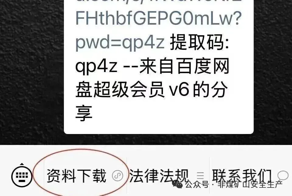 非煤矿山主要负责人履职(word+PPT) -END- 公众号课件下载方式: 1.公众号后台界面直接点击资料下载; 2.小程序搜索IMA小程序; 3.电脑或手机下载腾讯IMA软件,扫码或直接搜索 矿山安全生产(免费下载)加入知识库,所有资料均无条件免费下载! 1.公众号下载:公众号后台点击资料下载可进入小程序下载界面。 2.电脑端下载:打开文件直接点击下载。 3.手机端下载第一步:打开文件,点击右上角三个圆点 手机端下载第二步:直接发送给文件传输助手即可。 推荐阅读 非煤矿山隐蔽致灾因素普查规范讲解 矿山开采基本知识及风险防控(地下、露天、排土场、尾矿库) 非煤矿山安全培训计划及培训资料 地下非煤矿山开采知识与安全生产培训 地下、露天矿山及尾矿库重大隐患判定标准解读(PPT+视频) 建设项目安全设施三同时详解(含矿山、工贸行业,附矿山竣工验收表) 安全设备与安全设施分不清?来看看到底有什么区别 近年来非煤矿山事故案例警示教育汇编 非煤矿山外包工程管理培训及部分资料(结合相关文件要求) 《金属非金属矿山安全规程》—露天矿山详解(补充排土以及溜井部分) 《金属非金属矿山安全规程》—地下矿山内容详解(结合解读、法律法规、重要文件、规范标准等) 《安全生产违法行为行政处罚办法》(应急部18号令)修订新旧对比 矿山安全生产法律法规及国家局重要文件(更新至12月31日)