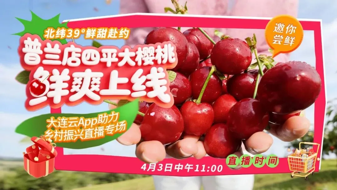 5J大樱桃免费送!4月3日大连云APP直播间一起来云摘大连好果