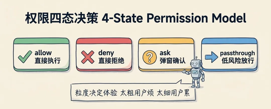 它的权限系统不是简单的 allow / deny 二选一,而是四态模型: