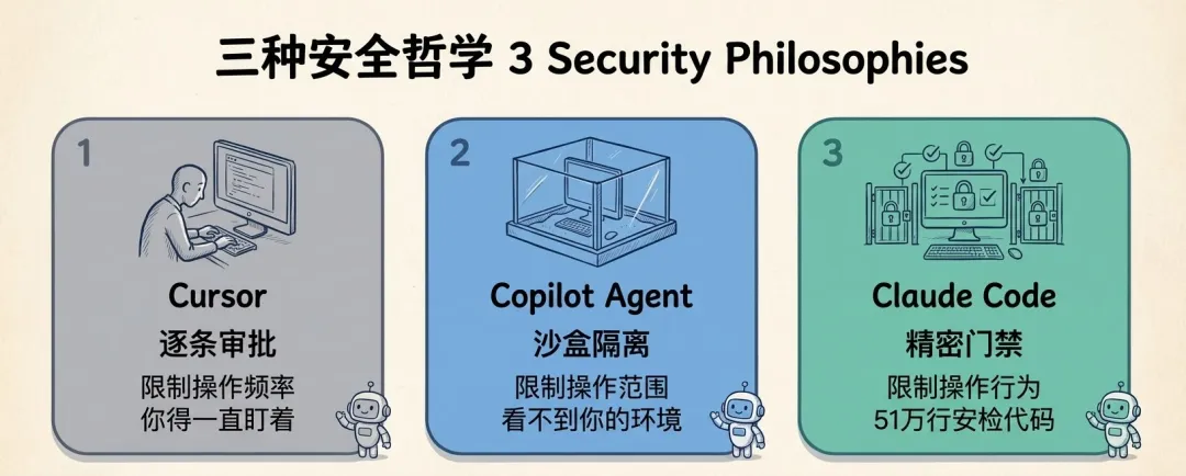 如果把几类 AI 编程产品放在一起看,会发现它们差异并不只是“功能多不多”,更是对风险来源的判断不同。