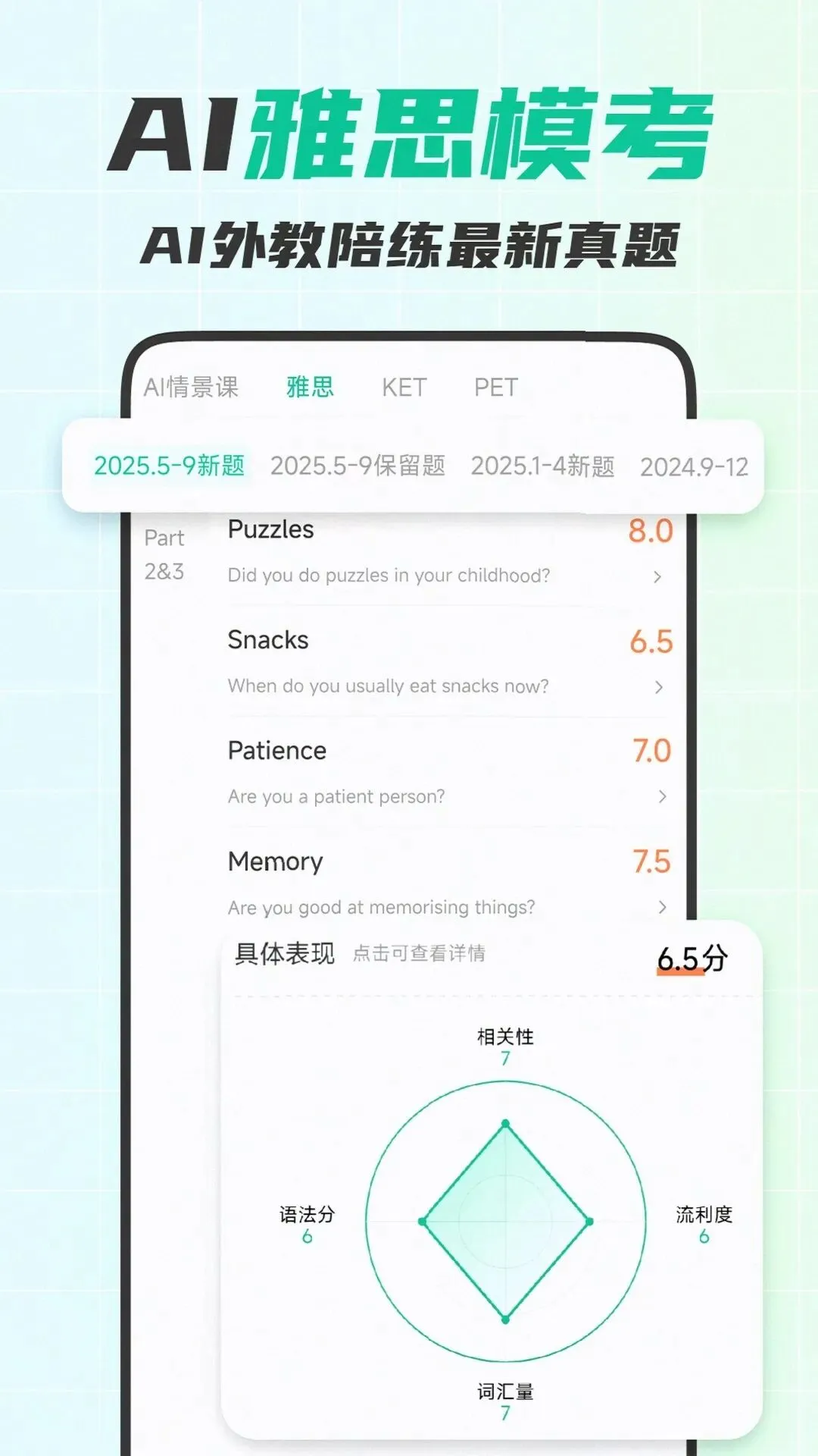 “备考雅思的时候用的,口语题库更新特别快,AI给的评分和我最后考试分数只差0.5,还会帮我润色回答,比自己对着镜子练效率高太多了”——雅思口语7分考生