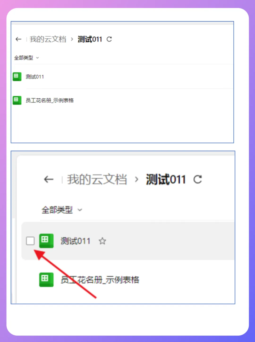 打开在线文件文件夹,鼠标滑动在文件上,会弹出勾选框