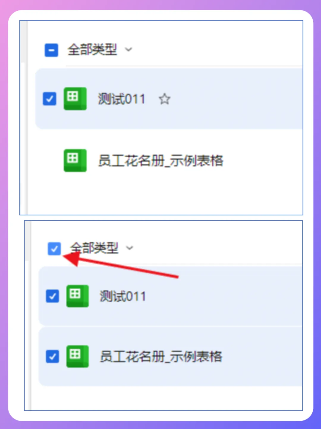 备注:也可以进行文件类型的筛选后进行选择/全选,根据需要进行勾选