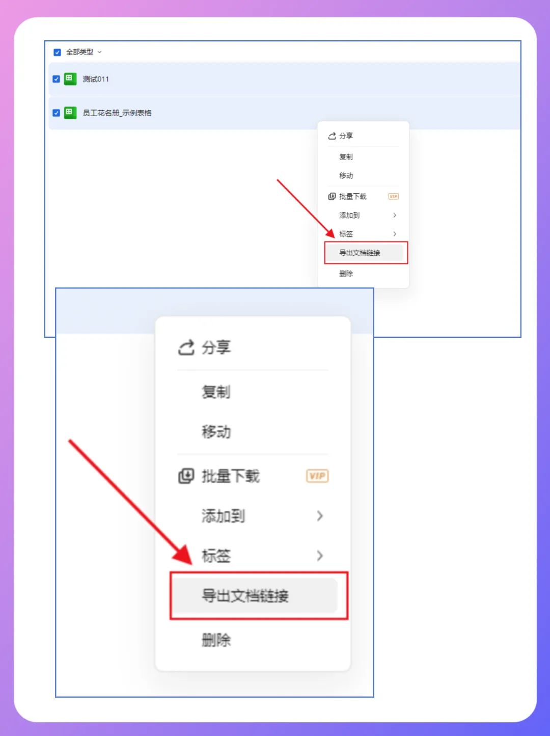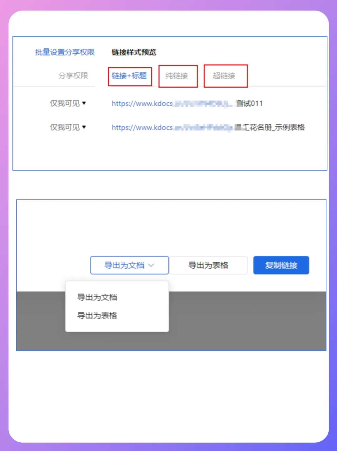 随之而来的问题就有一个,做的在线文档越来越多,有时候想整理、或者批量分享,一个一个的进行分享设置权限,很耽误时间,而且有时候链接没有复制到,分享出去也会出错,在使用中,其实有批量分享的功能,除了将整个文件夹分享出去外,也可以制作成一个一个的链接