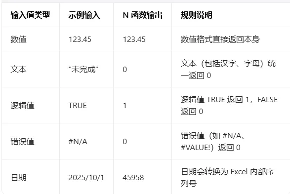兼容所有场景:从累加求和到逻辑值转换,N 函数是处理混合数据的 “万能补丁”。