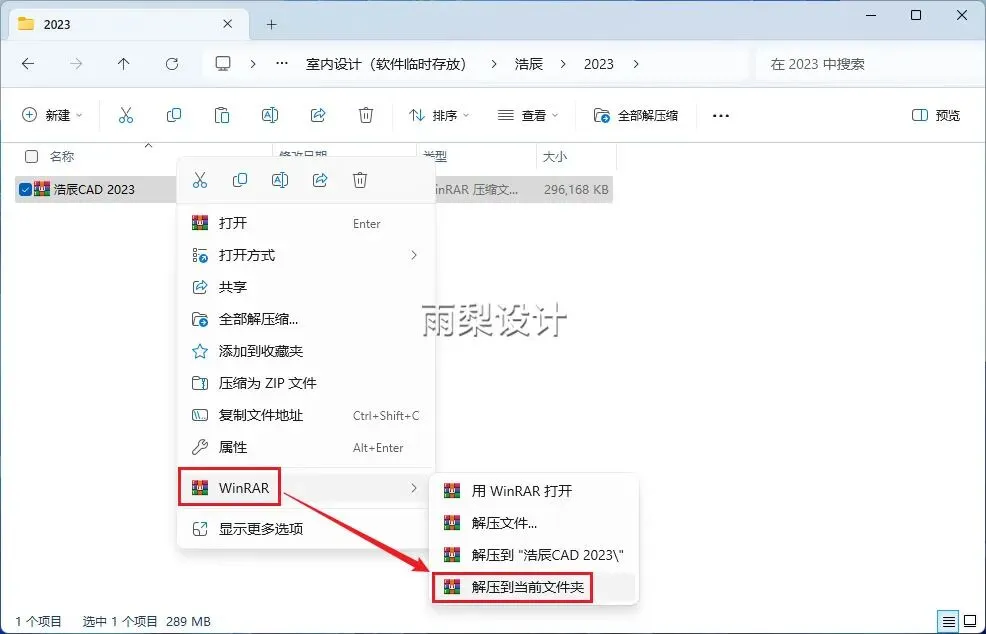 1.右键【下载的安装包】选择【解压当前文件夹】